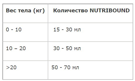 Рекомендуемая дозировка Nutribound зависит от веса собаки.